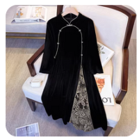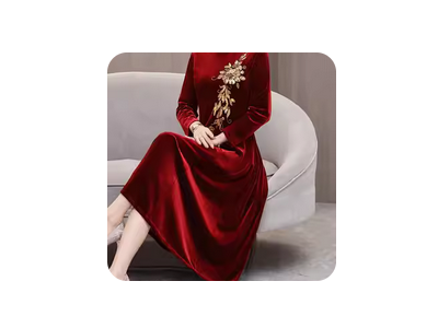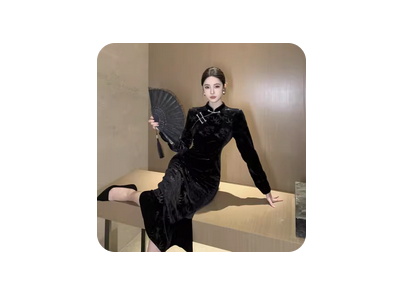 凰都夫人品牌女装 金丝绒旗袍女2022冬季新款长款亮片改良旗袍裙中国风端庄礼