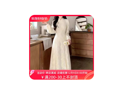 戚薇改良旗袍2023年冬季新款加厚长袖中国风复古年轻款少女素雅连衣裙 米黄花边