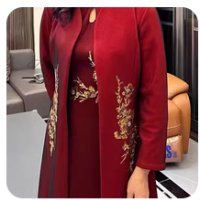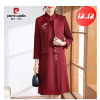 皮尔卡丹妈妈装高贵婚礼服秋冬装时尚套装旗袍连衣裙大码婚宴喜婆婆两件套 酒红