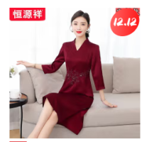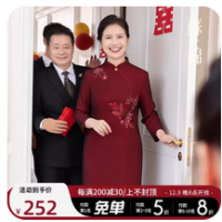 罗蒙(ROMON)酒红色旗袍敬酒服秋季妈妈装婚宴喜婆婆礼服新款丈母