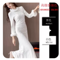 戚薇改良旗袍女秋冬中式气质高端2023年新款民国加厚毛领两件套连衣裙 马甲 3XL