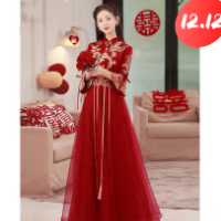 凌奕风尚(LVEFNSON)新中式旗袍敬酒服新娘2023新款晨袍红色结婚改良国风长