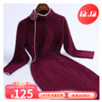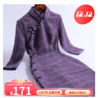 戚薇改良紫色雪尼尔旗袍2023秋冬新款女复古新中式优雅民中国风连衣裙 紫色 2XL