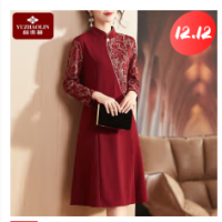 皮尔卡丹喜婆婆婚宴时尚礼服秋装改良旗袍连衣裙女春秋季妈妈红色洋气结婚 酒红