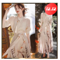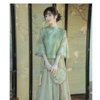 家隆名秀新中式禅意茶服旗袍两件套日常改良汉服文艺国风显瘦温柔连衣裙 套装 2XL 新款促销,更多旗袍新款