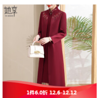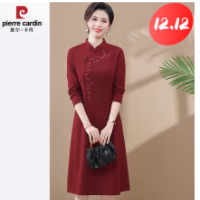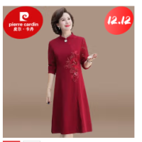 皮尔卡丹中年妈妈装新款改良旗袍连衣裙气质50岁中老年女装春秋季洋气裙子 酒