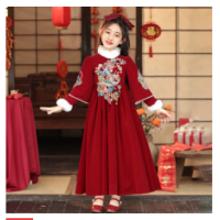 柚一杉女童拜年礼服公主汉服连衣裙儿童冬装加厚旗袍女孩中国风新年衣服 旗袍+