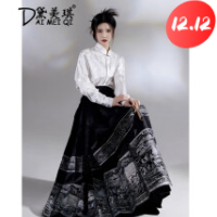 黛美琪马面裙连衣裙女装2023秋季新款套装新中式国风改良旗袍长裙子 黑色上衣+