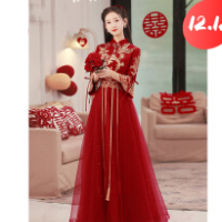凌奕风尚(LVEFNSON)新中式旗袍敬酒服新娘2023新款晨袍红色结婚改良国风长