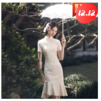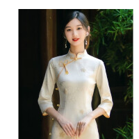 家隆名秀旗袍女装连衣裙2023年新款夏季 杏色 M 新款促销,更多旗袍新款