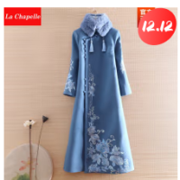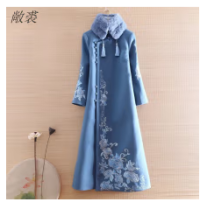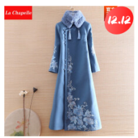 中国风棉麻连衣裙秋冬加绒碎花长裙中式苎麻改良旗袍2022年新款