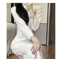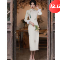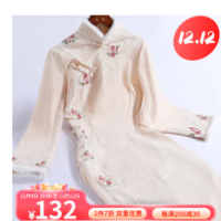 家隆名秀新中式改良旗袍女秋冬季加厚加绒高端气质年轻款少女中国风连衣裙 奶油