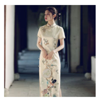 恒源祥品牌女装 2022新款旗袍改良版中国风单层修身优雅日常中长款