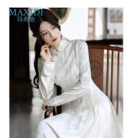 惠菱芷旗袍连衣裙轻熟风洋气减龄收腰显瘦感小个子公主裙中国风改良 白色 L 建