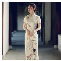 歌班娅旗袍年轻款2022夏季新款短袖中国风复古改良少女长款日常连衣裙 317旗袍