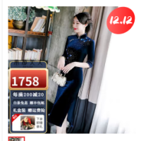 罗蒙(ROMON)金丝绒改良旗袍连衣女秋季2023年新款时尚高贵洋气遮肚中长子