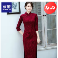 法黛姗国风中年气质年轻款最新款改良中长款修身妈妈旗袍连衣裙子礼服女 2092