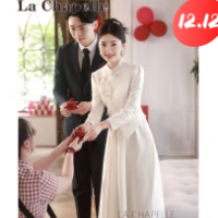 La Chapelle Sport拉夏贝尔订婚旗袍礼服连衣裙女中式登记领证小白裙敬酒服新娘