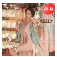 曼烟 情趣内衣 女性感睡衣透视连体睡裙盘扣古典长裙开裆免脱丁字裤制服诱惑纯