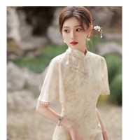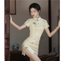 家隆名秀旗袍 2023年新款改良版夏季连衣裙气质高端年轻款少女新中式 杏色 M