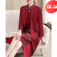 俞兆林喜婆婆婚宴时尚礼服平时可穿套装旗袍连衣裙婚宴装喜婆婆两件套 酒红色套