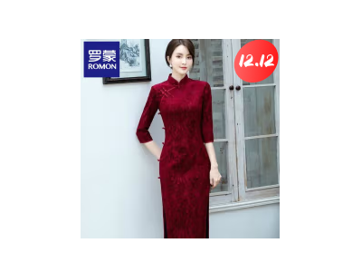 恒源祥喜婆婆婚宴装结婚旗袍连衣裙秋高端气质v领参加婚礼妈妈礼服高贵 酒红色